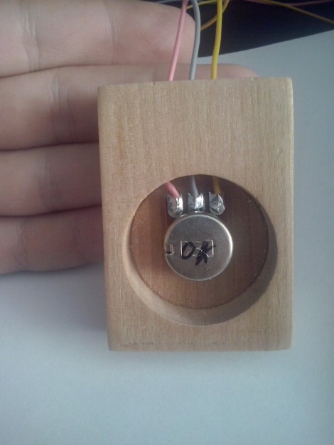 Zo spodu základne je navŕtaná 35mm diera, kde je zapustení potenciometer.