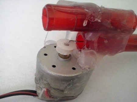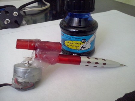 Toto tetovacie pero som urobil doma asi za pol hodiny a je z jedného obyčajného guličkového pera,motorčeka z DVD mechaniky a kusku pružného drôtu, ktorý je nakonci zabrúseny ako ihla. Na presné zmontovanie som použil tavné lepidlo. Princíp je veľmi jednoduchý a je dobre vidiet z obrázkov. Motorček napájam napätím 4V. Staci už len "ihlu" namočiť do atramentu a môžme tetovať. Zdvih je okolo 4-5mm (netreba moc tlačit).